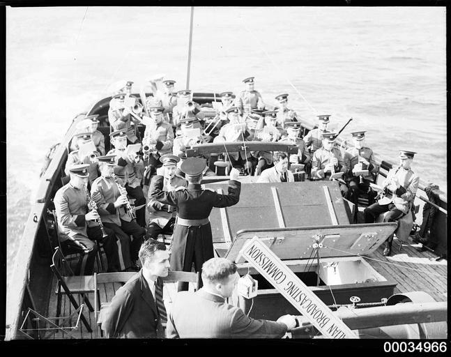 MAKE A MEME View Large Image This photograph probably depicts the Australian Broadcasting Commission 22-piece Military Band (also known as the National Military Band) with a conductor performing on board a small vessel with an Australian Broadcasting Commission ...