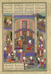 Keywords: Abd al-Aziz (attr.), Manuchihr Welcomes Sam but Orders War upon Mihrab, Folio 80v from the Shahnama (Book of Kings) of Shah Tahmasp, ca. 1525, Metmuseum.jpg en Abd al-Aziz attr Manuchihr Welcomes Sam but Orders War upon Mihrab Folio 80v from the Shahnama Book of Kings of Shah Tahmasp ca 1525 Metmuseum 2015-11-16 Metmuseum NY Abd al-Aziz other versions PD-Art Abd al-Aziz painter Uploaded with UploadWizard |