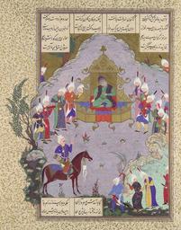 Keywords: Abd al-Aziz (attr.), Gushtasp Proves His Archery before Caesar, Folio 404r from the Shahnama (Book of Kings) of Shah Tahmasp 1525-30, Metmuseum.jpg en Abd al-Aziz attr Gushtasp Proves His Archery before Caesar Folio 404r from the Shahnama Book of Kings of Shah Tahmasp 1525-30 Metmuseum 2015-11-16 Metmuseum NY Abd al-Aziz other versions PD-Art Abd al-Aziz painter Uploaded with UploadWizard |