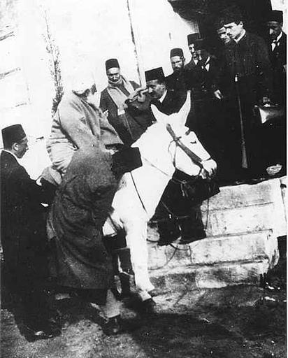 Keywords: Abdul-Baha in Israel - Riding Donky-b.jpg PD-old 'Abdu'l-Bahá