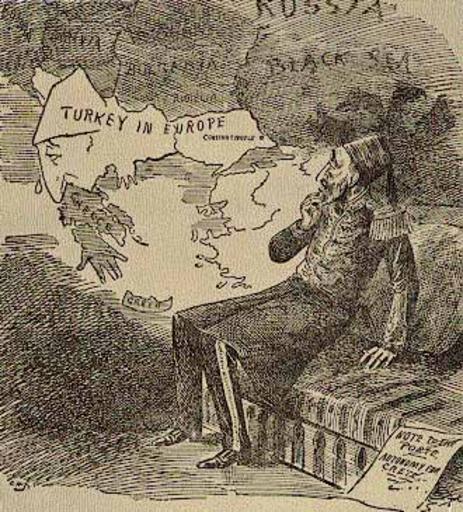 Keywords: Abdulhamid looks worriedly at European Turkey in 1897.jpg Abdul Hamid II looks worriedly at Turkey's shrinking European territories while the Morean peninsula in Greece is depicted as a hand extending towards Crete The shadow of the twin-headed Russian Eagle is depicted as a twin-headed buzzard behind Abdülhamid waiting for the right occasion for claiming its own spoils The face personifying Turkey shown over modern Albania looking south west resembles the looks of Abdülhamid The ultimatum paper at the bottom right sent by Europe's powers is titled Note to the Porte Autonomy for Crete PD-old original upload log page en wikipedia Abdulhamid_looks_worriedly_at_European_Turkey_in_1897 jpg 2007-02-09 22 37 Shuppiluliuma 330×365× 57614 bytes <nowiki> Abdülhamid II looks worryingly at Turkey's shrinking European territores while the Morean peninsula in Greece is depicted as an extending hand towards Crete Licensing PD-old </nowiki> Caricatures of Abdül Hamid II Greco-Turkish War 1897 1897 cartoons |