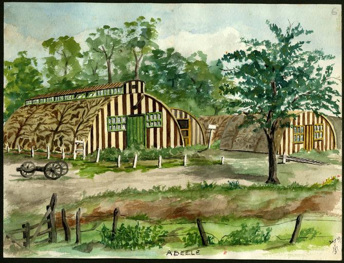Keywords: university of victoria universityofvictoria uvic great britain. army. royal regiment of artillery greatbritainarmyroyalregimentofartillery caricatures and cartoons--20th century caricaturesandcartoons20thcentury notebooks war artists warartists world war, 1914-1918--pictorial works worldwar19141918pictorialworks world war, 1914-1918--caricatures and cartoons worldwar19141918caricaturesandcartoons outdoor drawing Item is one of 123 pen-and-ink drawings and watercolours from two volumes titled: "Sketches of the War: France/Belgium". The sketches vary from satirical cartoons to more detailed and naturalistic renditions. They are often accompanied by an ironic title and are often signed with the artist's initials, "J.M." The artist's satirical targets include the officers and high command of both combatant sides; the disjuncture between reported and actual events, and the death of civilians as a fact of modern warfare. Item is one of 123 pen-and-ink drawings and watercolours from two volumes titled: "Sketches of the War: France/Belgium". The sketches vary from satirical cartoons to more detailed and naturalistic renditions. They are often accompanied by an ironic title and are often signed with the artist's initials, "J.M." The artist's satirical targets include the officers and high command of both combatant sides; the disjuncture between reported and actual events, and the death of civilians as a fact of modern warfare. |