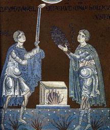Keywords: Abel and Cain offer their sacrifice to God.jpg en Abel and Cain offer their sacrifice to God Byzantine mosaic in the Cathedral of Monreale Own Sibeaster 2008-07 Cathedral Monreale - Old Testament mosaics Cain and Abel offering