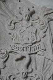 | Keywords: Abenberg St Jakob Epitaph 4e.jpg Abenberg Kath Pfarrkirche St Jakob Epitaph für ein Kind des Burgpflegers Alois Freiherr von Riedheim 1752 Detail Ahnenwappen Hornstein own own photograph 2015-07 Photo Andreas Praefcke Photos by User AndreasPraefcke Wall mounted church monuments in St Jakob Abenberg Reliefs of coats of arms in Abenberg Coats of arms of Hornstein family |