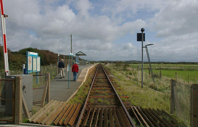 Keywords: outdoor trail vehicle railroad skyline Abererch railway station is located at a level crossing on the minor road from the beach to the village of Abererch on the Llŷn Peninsula in Gwynedd, Wales. 10 October 1867 Opens. attribution: mattbuck Abererch railway station is located at a level crossing on the minor road from the beach to the village of Abererch on the Llŷn Peninsula in Gwynedd, Wales. 10 October 1867 Opens. attribution: mattbuck |