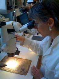MAKE A MEME View Large Image The Walters Art Museum's book conservator looking through a microscope at mold damaged parchment. The Walters Art Museum's book conservator looking through a microscope at mold damaged parchment.