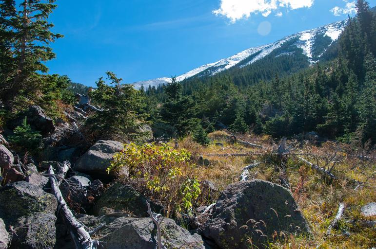 | Keywords: abineau trail abineautrail abineau trail #127 abineautrail127 abineau trail no. 127 abineautrailno127 abineau-bear jaw loop abineaubearjawloop arizona coconino national forest coconinonationalforest flagstaff ranger district flagstaffrangerdistrict forest service forestservice humphreys peak humphreyspeak kachina peaks wilderness kachinapeakswilderness san francisco mountain sanfranciscomountain san francisco peaks sanfranciscopeaks usfs flagstaff forest hiking mountain outdoors peaks trail wilderness outdoor hill landscape mountainside Abineau Trail is a steep 1,800 foot climb over two miles up the slopes of the San Francisco Peaks through Abineau Canyon. The trail meets the Waterline Trail at the top, which can be followed down to Bear Jaw Trail to return to the trailhead. Each leg of the loop is around two miles long, plus a 0.4 mile connector trail from the trailhead to the loop, making a total loop hike of seven miles. The loop is one of the quintessential autumn hikes in the San Francisco Peaks. Aspens along all three legs of the loop turn gold, and falling leaves carpet the forest floor and decorate the conifers. A storm system passed through the area October 4-7, 2015, raining at lower elevations and snowing on the upper reaches of the San Francisco Peaks. The snow-capped Peaks were a wonderful treat after the few days grey, cloudy, wet weather that had put a damper on outdoor activity. Photo by Deborah Lee Soltesz, October 8, 2015. Credit: U.S. Forest Service, Coconino National Forest. For more information about this trail, see the Abineau-Bear Jaw Loop trail description on the Coconino National Forest website. Abineau Trail is a steep 1,800 foot climb over two miles up the slopes of the San Francisco Peaks through Abineau Canyon. The trail meets the Waterline Trail at the top, which can be followed down to Bear Jaw Trail to return to the trailhead. Each leg of the loop is around two miles long, plus a 0.4 mile connector trail from the trailhead to the loop, making a total loop hike of seven miles. The loop is one of the quintessential autumn hikes in the San Francisco Peaks. Aspens along all three legs of the loop turn gold, and falling leaves carpet the forest floor and decorate the conifers. A storm system passed through the area October 4-7, 2015, raining at lower elevations and snowing on the upper reaches of the San Francisco Peaks. The snow-capped Peaks were a wonderful treat after the few days grey, cloudy, wet weather that had put a damper on outdoor activity. Photo by Deborah Lee Soltesz, October 8, 2015. Credit: U.S. Forest Service, Coconino National Forest. For more information about this trail, see the Abineau-Bear Jaw Loop trail description on the Coconino National Forest website. |