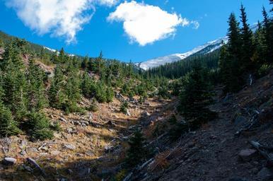 | Keywords: abineau trail abineautrail abineau trail #127 abineautrail127 abineau trail no. 127 abineautrailno127 abineau-bear jaw loop abineaubearjawloop arizona coconino national forest coconinonationalforest flagstaff ranger district flagstaffrangerdistrict forest service forestservice humphreys peak humphreyspeak kachina peaks wilderness kachinapeakswilderness san francisco mountain sanfranciscomountain san francisco peaks sanfranciscopeaks usfs flagstaff forest hiking mountain outdoors peaks trail wilderness outdoor landscape mountainside hill tree plant Abineau Trail is a steep 1,800 foot climb over two miles up the slopes of the San Francisco Peaks through Abineau Canyon. The trail meets the Waterline Trail at the top, which can be followed down to Bear Jaw Trail to return to the trailhead. Each leg of the loop is around two miles long, plus a 0.4 mile connector trail from the trailhead to the loop, making a total loop hike of seven miles. The loop is one of the quintessential autumn hikes in the San Francisco Peaks. Aspens along all three legs of the loop turn gold, and falling leaves carpet the forest floor and decorate the conifers. A storm system passed through the area October 4-7, 2015, raining at lower elevations and snowing on the upper reaches of the San Francisco Peaks. The snow-capped Peaks were a wonderful treat after the few days grey, cloudy, wet weather that had put a damper on outdoor activity. Photo by Deborah Lee Soltesz, October 8, 2015. Credit: U.S. Forest Service, Coconino National Forest. For more information about this trail, see the Abineau-Bear Jaw Loop trail description on the Coconino National Forest website. Abineau Trail is a steep 1,800 foot climb over two miles up the slopes of the San Francisco Peaks through Abineau Canyon. The trail meets the Waterline Trail at the top, which can be followed down to Bear Jaw Trail to return to the trailhead. Each leg of the loop is around two miles long, plus a 0.4 mile connector trail from the trailhead to the loop, making a total loop hike of seven miles. The loop is one of the quintessential autumn hikes in the San Francisco Peaks. Aspens along all three legs of the loop turn gold, and falling leaves carpet the forest floor and decorate the conifers. A storm system passed through the area October 4-7, 2015, raining at lower elevations and snowing on the upper reaches of the San Francisco Peaks. The snow-capped Peaks were a wonderful treat after the few days grey, cloudy, wet weather that had put a damper on outdoor activity. Photo by Deborah Lee Soltesz, October 8, 2015. Credit: U.S. Forest Service, Coconino National Forest. For more information about this trail, see the Abineau-Bear Jaw Loop trail description on the Coconino National Forest website. |