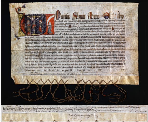 Keywords: Ablass für die Pfarrkirche zum hl Kreuz Schwäbisch-Gmünd.jpg Ablass von 12 Erzbischöfen und Bischöfen für die Pfarrkirche zum hl Kreuz das Spital und alle Filialkirchen und -kapellen in Schwäbisch-Gmünd Avignon 1345 Mai 13 XIII die mensis maii anno domini MCCCXLV et pontificatus domini Clementis pape VI anno tercio http //www landesarchiv-bw de/plink/ f 1-324608 1345 author PD-old-100 History of Schwäbisch Gmünd Illuminated archival materials Indulgences 1345 documents |