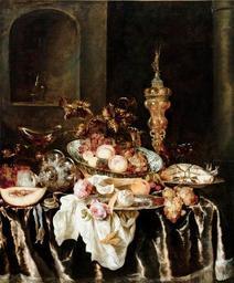 Keywords: Abraham van Beyeren, A Banquet Still Life with Roses, San Antonio Museum of Art.jpg en A Banquet Still Life with Roses by Abraham van Beyeren circa 1665 Oil on canvas San Antonio Museum of Art San Antonio Museum of Art Abraham van Beyeren 1665 Paintings in the San Antonio Museum of Art Beyeren Baroque still life paintings of food Still life paintings by Abraham van Beijeren 1665 1660s still life paintings PD-Art