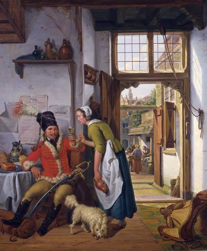 Keywords: Abraham van Strij (I) 001.jpg Artwork Creator Abraham van Strij 64188 </ref> Alternate titles 1825 Oil on canvas size cm 72 61 Private collection 64188 object history ProvenanceEvent 1986-04-14 anonymous sale Mak van Waay Amsterdam 254 unknown by 1987-1988 Peter van Os Antiques Fine Arts art dealer Arnhem ProvenanceEvent 2004-11-02 anonymous sale Sotheby's Amsterdam 63 Stichting Vrienden van het Dordrechts Museum ProvenanceEvent 2005 gift LangSwitch das the au het Dordrechts Museum Dordrecht Stichting Vrienden van het Dordrechts Museum credit line A Van Stry / 1825 signature and date bottom right accession number WGA link 21891 http //www wga hu/art/s/strij/abraham/interior jpg http //www wga hu/html/s/strij/abraham/interior html painting interior Dutch 1751-1800 PD-old-100 LangSwitch Notes Noten <references /> WGA form painting WGA type interior WGA School Dutch WGA time period 1751-1800 Abraham van Strij Soldier and a waitress in a tavern 19th-century paintings in unidentified private collections Paintings in the Dordrechts Museum aan de Haven 1825 oil on canvas paintings 1820s genre paintings 19th-century paintings of dogs Jugs in art Military people and civilians in art People in rooms in art Household Uniform pelisses Sheepskin clothing Fur fashion in 1825 |