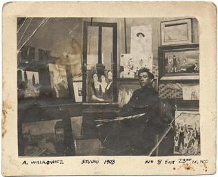 Keywords: smithsonian institution smithsonianinstitution abraham walkowitz in his studio abrahamwalkowitzinhisstudio abraham walkowitz abrahamwalkowitz artist easel paintings artist's studio artistsstudio portrait artist portraitartist a walkowitz awalkowitz gallery archives of american art archivesofamericanart Description: Walkowitz in his studio holding a pallette and brushes. Identification on front (handwritten): A. Walkowitz; Studio 1908; No. 8 East 23rd St. NY. Identification on verso (handwritten): The studio of Abraham Walkowitz, 8 East 23rd Street New York; the picture was taken the year of 1908. Walkowitz, Abraham, 1880-1965 Creator/Photographer: Unidentified photographer Medium: Black and white photographic print Dimensions: 10 cm x 12 cm Date: 1908 Persistent URL: www.aaa.si.edu/collections/images/detail/abraham-walkowit... Repository: Archives of American Art Collection: Abraham Walkowitz papers, 1904-1966 Accession number: aaa_walkabra_4936 Description: Walkowitz in his studio holding a pallette and brushes. Identification on front (handwritten): A. Walkowitz; Studio 1908; No. 8 East 23rd St. NY. Identification on verso (handwritten): The studio of Abraham Walkowitz, 8 East 23rd Street New York; the picture was taken the year of 1908. Walkowitz, Abraham, 1880-1965 Creator/Photographer: Unidentified photographer Medium: Black and white photographic print Dimensions: 10 cm x 12 cm Date: 1908 Persistent URL: www.aaa.si.edu/collections/images/detail/abraham-walkowit... Repository: Archives of American Art Collection: Abraham Walkowitz papers, 1904-1966 Accession number: aaa_walkabra_4936 |