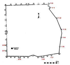 Keywords: Abrittus umwehrun.jpg de Umwehrung des Kastells Abrittus Razgrad BG Zustand 4 Jhdt n Chr own Veleius 06 02 2013 Abzeichnung aus Teofil Iwanow Abritus Rimski kastel i rannovizantijski grad v Dolna Mizija Teil 1 Topografija i ukrepitelna sistema na Abritus Bulg Akad na naukite Archeol Inst i Muzej Sofia 1980 mit engl Zusammenfassung S 236-248 Abritus a Roman Castle and Early Byzantine Town in Moesia Inferior Cc-zero Abrittus Floor plans of fortresses in Bulgaria