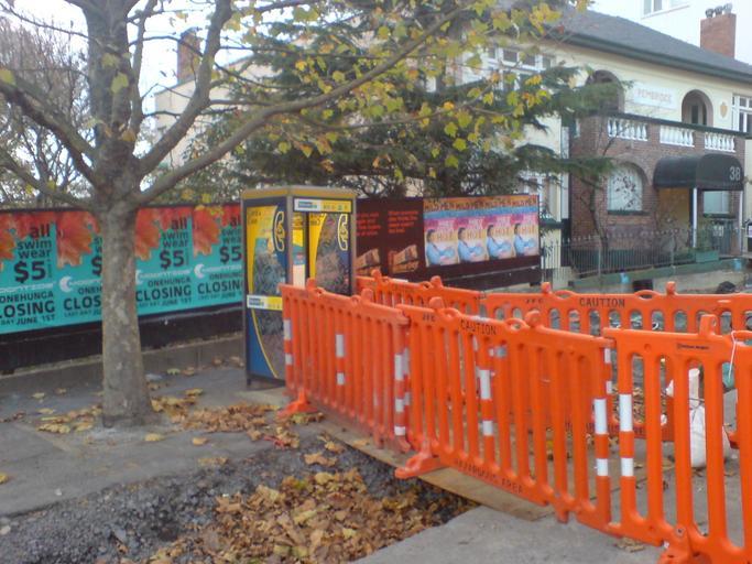 | Keywords: Accessible Modern Communication.jpg Construction traffic management gone WILD - footpath access to a public phone on Symonds Street on the construction site of the Central Connector in Auckland City New Zealand coordinates approximate Wonder if it got more than a call or so a month self-photographed 2009-05 Uploader -36 8553169 174 767139 Photos taken by Ingolfson Pedestrian barriers Orange objects Barriers in New Zealand Telephone booths in New Zealand Symonds Street Auckland 2009 in Auckland Construction of the Central Connector Auckland |