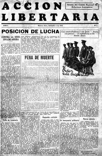 | Keywords: Accion Libertaria.jpg en Argentinian anarchist periodical ACCION LIBERTARIA http //anarcoefemerides balearweb net/ Comité Regional de Relaciones Anarquistas 1933-09-01 PD-old Periodicals about anarchism 1 September 1933 newspapers 1933 in Argentina Buenos Aires in the 1930s Periodicals of Argentina |