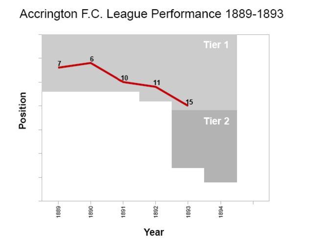 Keywords: Accrington FC league results 1889-1893.PNG Graph showing Accrington FC's performance from the first season of the English Football League in 1888-1889 to 1892-1893 when they resigned from the League after coming fifteenth out of sixteen clubs and then losing the test match against Sheffield United Interestingly the team they beat in the league were Newton Heath who were later re-named Manchester United Transferred from http //en wikipedia org en wikipedia; transferred to Commons by User Kafuffle using http //tools wikimedia de/~magnus/commonshelper php CommonsHelper <br/> Original text I created this work entirely by myself 09 October 2008<br/> 2008 10 09 original upload date Payo talk Original uploader was Payo at http //en wikipedia org en wikipedia Released into the public domain by the author en wikipedia Payo Original upload log page en wikipedia Accrington_FC_league_results_1889-1893 PNG 2008-10-09 20 15 Payo 601×488× 16874 bytes <nowiki> Graph showing Accrington FC's performance from the first season of the English Football League in 1888-1889 to 1892-1893 </nowiki> Accrington Stanley F C Association football diagrams of England |