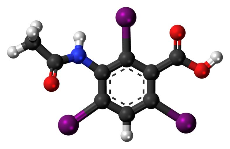 Keywords: acetrizoic acid x-ray contrast agent molecule structure model chemistry science compound atoms bonding