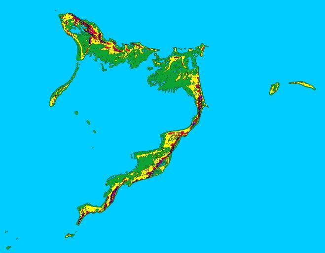 Keywords: Acklins and Crooked 15ft 4p572 shaded.png Acklins Island Crooked Island and Long Cay in the Bahamas shaded at 15 foot 4 572 meter contour intervals <br><br> MAP KEY<br> Light Blue 0 ft 0 0 m <br> Green 0-15 ft 0 0-4 6 m <br> Yellow 15-30 ft 4 6-9 1 m <br> Red 30-45 ft 9 1-13 7 m <br> Violet 45-60 ft 13 7-18 3 m <br> Blue 60-75 ft 18 3-22 9 m <br> White 75-90 ft 22 9-27 4 m <br> Light Green 90+ ft 27 4+ m <br><br> Map created with SRTM3 digital elevation data http //dds cr usgs gov/srtm/version2_1/SRTM3/ Resolution is ~90 meters Own Lithium6ion 2012-02-22 Maps of the Bahamas |