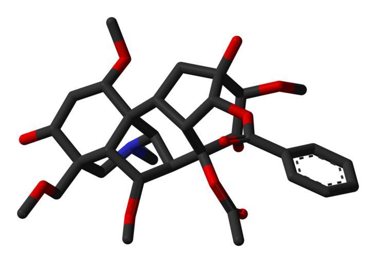 | Keywords: Aconitine-xtal-3D-sticks-skeletal.png Stick model of the aconitine molecule as found in the crystalline state Single crystal X-ray diffraction data from cite journal Structure and conformation of aconitine P W Codding Acta Cryst 1982 September B38 9 2519-2522 10 1107/S056774088200925X Image generated in http //accelrys com/products/discovery-studio/visualization/discovery-studio-visualizer html Accelrys DS Visualizer Own 2008-05-18 Ben Mills Benjah-bmm27 Images by Ben Mills 3D-sticks models Aconitine |