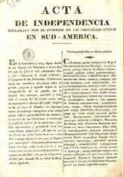Keywords: Acta Independencia argentina quechua.jpg Acta de Independencia de las Provincias Unidas en Sud América en español y en quechua Act of Independence of the United Provinces of South America today's Argentina in Spanish and Quechua Archivo General de la Nación - Argentina photo from an original printed in Buenos Aires in 1816 by Imprenta de Gandarillas y Socios Author not required Spanish text / texto en español ACTA <br /> En la benemérita y muy digna ciudad de San Miguel de Tucumán a nueve dÃas del mes de julio de mil ochocientos diez y seis terminada la sesión ordinaria el Congreso de las Provincias-Unidas continuó sus anteriores discusiones sobre el grande y augusto objeto de la independencia de los pueblos que lo forman Era universal constante y decidido el clamor del territorio entero por su emancipación solemne del poder despótico de los reyes de España; los representantes sin embargo consagraron á tan arduo asunto toda la profundidad de sus talentos la rectitud de sus intenciones é interés que demanda la sanción de la suerte suya pueblos representados y posteridad A su término fueron preguntados si querÃan que las Provincias de la Unión fuesen una nación libre e independiente de los reyes de España y su metrópoli Aclamáron primero llenos del santo órden de la justicia y uno á uno reiteráron sucesivamente su unanime y espontaneo decidido voto por la independencia del paÃs fixando en su virtud la determinación siguiente DECLARACION <br /> Nos los representantes de las Provincias-Unidas en Sud-América reunidos en congreso general invocando al Eterno que preside el universo en el nombre y por la autoridad de los pueblos que representamos protestando al cielo á las naciones y hombres todos del globo la justicia que regla nuestros votos declaramos solemnemente á la faz de la tierra que es voluntad unánime é indubitable de estas provincias romper los violentos vÃnculos que las ligaban á los reyes de España recuperar los derechos de que fueron despojados e investirse del alto carácter de una nación libre é independiente del rey Fernando 7 sus sucesores y metropoli; quedar en consecuencia de hecho y de derecho con amplio y pleno poder para darse las formas que exija la justicia é impere el cúmulo de sus actuales circunstancias Todas y cada una de ellas asà lo publican declaran y ratifican comprometiendose por nuestro medio al cumplimiento y sosten de esta su voluntad baxo del seguro y garantÃa de sus vidas haberes y fama ComunÃquese á quienes corresponda para su publicación y en obsequio del respeto que se debe a las naciones detállense en un manifiesto los gravÃsimos fundamentos impulsivos de esta solemne declaración Dada en la Sala de sesiones firmada de nuestra mano sellada con el sello del congreso y refrendada por nuestros diputados secretarios Francisco Narciso de Laprida diputado por San Juan presidente <br /> Dr Antonio Saenz diputado por Buenos Ayres <div class prose> Versión parafrástica en idioma quichua ” Cai sumacc ancha camayocc San Miguel Tucmanmanta hatum llacctapi waranccapusacc pachacc chunca socctayocc watacc ccanchis quillacc isckon ppunchaynimpi llacctanchecc raycu cchawanancupacc Hamauttacuna hatun tantacuy congreso nisccapi tantascca tucui soncconcuwan tucui yachaynincuwan unancharccancu ttaccacuynincheccta cunancama camachicquenchecc auccacunamanta huc similla tucuyneccpi llacctanchecc cunacc cay ruracunanta munasccancu uyaricun huc munaylla hinantin ruraynincuwan yuyaynincuwan wañuy wañuy wañuy munapayasccancuta sutti suttipi ricuchincu; chaywampis yuyaspa cay hatun simipi casccanta paycunacc llacctancunacc wawancunacc wawampapis cusisamin ú chiquin Hamautta Ranticuna alliy alliymanta huctawan huctawan cai hawa rimarccancu Allin allinta unanchaspañari tapuscca carccancu Munanquichecchu tucui llacctacuna piraycuchus Ranti canquichecc España reycunamanta ttaccacuspa payccunac quiquin atiyninpi camachiynimpi cquheparinancuta Caita uycariytawan usccay usccayta hatarispa munaycunnispa ccaparincuc; aswan callpayocc cai sutti munaynincu cananpaccri hucmanta hucmanta munaycu nerccancu; tucuipa yachayninman chayananpaccri cai hinata cquellccarccancu Ñoccaicu cai Americacc Anti suyumpi tantascca llacctacunacc Rantin ñoccaicuman Pacchacamaccta waccyaspa llacctaycucc sutimpi llacctaycucc camachiynimpi hanac-pachaman cai pacha tucui llacctacunaman tucui runacunaman soncoycucc llamppu checcan unanchayninta ricuchispa rimariycu yachachiycu Muyu-pachacc ccaillampi; sutti huc munaynillan cai tucuy llactacunacc ccasccanta lliqquiy saccra watanasta imawanchus yanccalla España Reycunaman watascca carccancu atiyninta suancunamanta ppataspari huc hatun llacta ruracunancu; paicuna quiquin cunan camachecc Rey Fernando ccanchismanta wawancunamanta llactanmantawan wiñaypacc ttaccascca; cairaycuri hatun sumacc atiywan sutippi cquecheparincu imaynachus aswan allin cancca cusisamimpacc tucui imancu unanchascca hina camachiyta paycuna quiquin maquinmanta ccocunanpacc; tucui tanta ñaupaccta cquhepamanri hucmanta hucmanta hinata ccaparincu yachachincu huctawan huctawanri rincu; caita hunttanancupaccri ñoccaycupi chura cuspa puraccmanta watanacuncu causaynincuwan tiyapuynincuwan sumac sutincuwan Picunamanchus yacha chicunan yachachiscca cachun tucuipa vincrinman chayanamanpacc; hawa llactacunacc unanchanampacri imaraycuchus ruranchecc cai sumacc checcan rurayta sutti cquelccapi tucui churacuchum Congreso wasipi rurasca selloycuwan sellasca secretarioycucc cquellccanwan callpachascca Cai hina juramentota tucui llacctancheccpi tiyacucc runacuna ¿Juranquichu Pacha-camacc Apu Yayanchecc raycu santa cruz raycuwampis + ttimpurichiyta hamachhaita mayneccpipis camarichiyta cai Americacc Anti Suyumpi tantascca hatun llaxtacunacc ttaccacuyninta ccanchis Fernando España reymanta wawasninmanta llacctanmanta tucui hawa llaccta camachecc cunamantawan ¿Juranquichu Pacha-camacc Apu Yayancheccman ari ninquichu llacctancheccman atiyninraicu