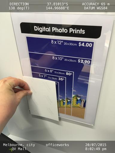 I am a frequent shopper at Officeworks. Imagine that you are a customer looking at the photo enclosed. The information on the sign does not relate to the actual photo size. Do you not think this is misleading? I know it is difficult to change the sign (photo enclosed) due to politically correct reasons.