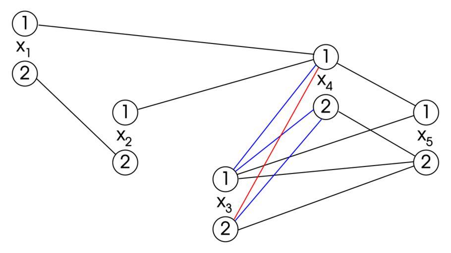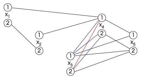 Keywords: Adaptive-2.svg A constraint satisfaction problem to be used as an example for showing how adaptive consistency works This is the effect of the first step of the algorithm one of the blue lines is removed thus actually creating a new constraint Constraint satisfaction 2006-02-10 own assumed Tizio |