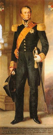 Keywords: Adel im Wandel403.jpg Fürst Karl von Hohenzollern-Sigmaringen 1785 “ 1853 reg 1831 “ 1848 Fürstliche Hohenzollerische Sammlungen Sigmaringen 1852 Oil on canvas Sigmaringen Castle Eingescannt aus Mark Hengerer und Elmar L Kuhn Adel im Wandel; Oberschwaben von der Frühen Neuzeit bis zur Gegenwart; Band 1 Ostfildern 2006 ISBN 978-3-7995-0216-0 Reproduction of a painting that is in the public domain because of its age other versions PD-old-100 Richard Lauchert Paintings in Sigmaringen Castle Charles Prince of Hohenzollern-Sigmaringen 1852 1852 oil on canvas paintings Portrait 1852 portrait paintings Male 19th-century oil portraits of standing men at full length wearing military uniforms 1852 19th-century portrait paintings in Germany 1852 19th-century portraits with coat of arms Badges of chivalric orders in portrait paintings 1852 Coats of arms of Germany fringed epaulettes Male shoes in portrait paintings 1852 Portrait paintings of men holding hats 1852 Portrait paintings of men holding swords 1852 Sash of the Order of the Black Eagle in portrait paintings 1852 Star of the Order of the Black Eagle in portrait paintings 1852 1850s paintings in Baden-Württemberg |