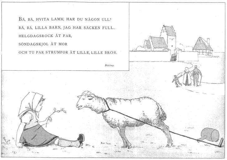 | Keywords: Adelborg1.png en Black and white copy from a water colour painting in Ottilia Adelborgs book Ängsblommor published in 1890 sv Svart/vit kopia av en akvarell i Ottilia Adelborgs bok Ängsblommor publicerad 1890 Ängsblommor av Ottilia Adelborg Ottilia Adelborg 1890 PD-old Baa Baa Black Sheep Swedish text |
