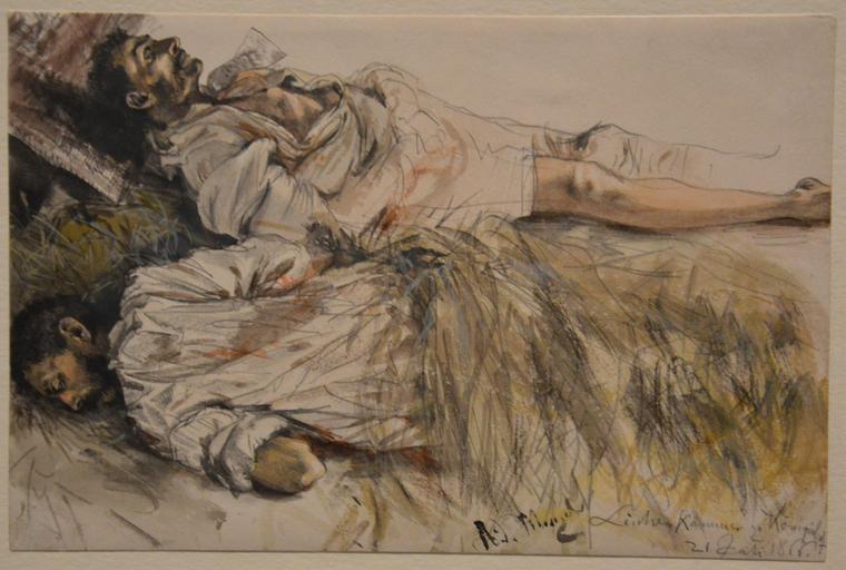 | Keywords: Adolph Menzel - Leichen-Kammer zu Koninginhof - Zwei gefallene Soldaten in einer Scheune (21 July 1866).JPG de Adolph Menzel - Leichen-Kammer zu Koninginhof - Zwei gefallene Soldaten in einer Scheune 21 July 1866 2014-12-18 16 24 07 own Illustratedjc other versions PD-old-100 cc-by-sa-4 0 Paintings by Adolph von Menzel in the Alte Nationalgalerie Uploaded with UploadWizard 1866 paintings in Germany Austro-Prussian War Killed soldiers in art | ||||