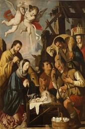 Keywords: Adoración de los pastores, de Mateo Gilarte (Museo del Prado).jpg La obra representa el momento en que el Niño Jesús fue adorado por los pastores de Belén poco después de su nacimiento 1651 oil on canvas Size cm 146 228 Institution Museo del Prado Depositado en la Universidad Central de Barcelona https //www museodelprado es/coleccion/obra-de-arte/adoracion-de-los-pastores/e9cbb2d8-2fe5-474d-98d4-a7b786af8e05 accession number P05311 https //www museodelprado es/coleccion/obra-de-arte/adoracion-de-los-pastores/e9cbb2d8-2fe5-474d-98d4-a7b786af8e05 PD-old-100 Paintings of adoration by the shepherds in Spain 17th-century paintings of adoration by the shepherds Paintings by Mateo Gilarte in the Prado Museum 17th-century paintings in the Prado Museum Paintings in the Edifici històric de la Universitat de Barcelona 1651 paintings in Spain |