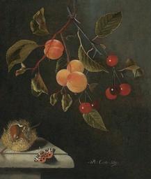 Keywords: Adriaen Coorte - Stilleven met een vlinder, abrikozen, kersen en een kastanje.jpg Artwork Creator Adriaen Coorte 1685 oil canvas cm 40 6 34 9 http //www sothebys com/de/ecat pdf N08712 html/f/144/N08712-144 pdf by Sotheby's PDF object history With Van Pappelendam Schouten Amsterdam; Their sale Amsterdam Frederik Muller Cie 11-12 June 1889 lot 207; Anonymous sale Boston Skinner Inc 17 November 2006 lot 1 as Dutch School 17th Century Style to Green;<br/>With Richard Green London 2007; By whom sold to a private collector credit line A Coorte i685 signature/date lower right accession number http //www sothebys com/de/catalogues/ecatalogue html/2011/important-old-master-paintings-sculpture-n08712 /r /de/ecat fhtml N08712 html+r m /de/ecat lot N08712 html/144/ Sotheby's PD-old-100 Paintings by Adriaen Coorte 17th-century still life paintings of fruits Still life paintings with butterflies 1680s still life paintings 1685 paintings Images from Sotheby's 17th-century paintings location missing Apricots in art Paintings of cherries Paintings with signatures lower right |