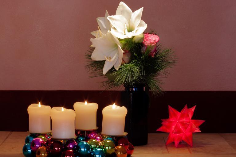 Keywords: advent wreath christmas amaryllis white flowers flower plant botany inflorescence amaryllis plant flora christbaumkugeln candles paper star red light