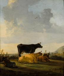 Keywords: Aelbert Cuyp - Landschap bij avondzon met drie koeien en een liggende herdersjongen.jpg Artwork Creator Aelbert Cuyp en Landscape with three cows and a cowherd between 1635 1691 Oil on canvas size cm 66 9 58 5 Institution Rijksmuseum Twenthe 211098 http //www collectierijksmuseumtwenthe nl/ventura/engine php Cmd see P_site 812 P_self 656 PMax Bladeren PSkip 0 Collectie Rijksmuseum Twenthe object history credit line accession number ERH015000349 PD-old-100 Paintings with cattle by Aelbert Cuyp Young Herdsman with Cows Cattle herders in art 17th-century landscape paintings |