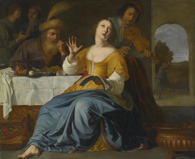 | Keywords: Aelbert van Der Schoor Esther and Mordecai.jpg Esther and Mordecai signed and dated on the chalice centre left AV Schoor 1643 AV in ligature oil on canvas; 141 7 by 173 8 cm http //www sothebys com Sotheby's Sale N08952 New York 2013-01-31 “2013-02-01 1643 Creator Aelbert Jansz van der Schoor PD-art-100 Images from Sotheby's Aelbert Jansz van der Schoor Esther and Mordecai 1643 paintings Violinists in art | ||||