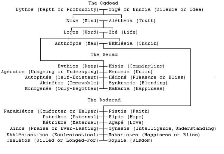 | Keywords: Aeons.png text appears similar to the text of a footnote from the Valentinus and the Valetinians entry in the 1911 Encyclopædia Britannica but differs and although George Robert Stow Mead published a book in 1900 or 1901 entitled Fragments of a faith forgotten Some short sketches among the gnostics mainly of the first two centuries A contribution to the study of Christian origins based on the most recently recovered materials By G R S Mead the http //catalog hathitrust org/Record/007473449 edition available online doesn't include any figures or diagrams and many of the words and phrases in the diagram depicted in this image are not found by a full text search So at least some of the details of authorship of this diagram may be erroneous G R S Mead approx 1900 Superstructure of the celestial system the celestial world of Aeons is here developed in the most complicated way These Aeons belong to the purely ideal noumenal intelligible or supersensible world; they are immaterial they are hypostatic ideas Together with the source from which they emanate they form the Pleroma The transition from the immaterial to the material from the noumenal to the sensible is brought about by a flaw or a passion or a sin in the female Aeon Sophia Epiphanius alleges that the Valentinians set forth their thirty aeons in mythologic fashion thinking that they conformed to the years of Jesus Of the eight celestial beings of the Ogdoad four are peculiar to the Valentinian system The third pair of Aeons Logos and Zoe occur only here and the place of this pair of Aeons is not firmly established and occur sometimes before and sometimes after the fourth pair of Aeons the Anthropos and the Ekklesia Transferred from http //en wikipedia org en wikipedia by SreeBot G R S Mead 1863-1933 other versions 1933 Original upload log page en wikipedia Aeons png Upload date User Bytes Dimensions Comment 2008-07-19 09 45 UTC 718 Bot 4303 bytes 600×413 <small><nowiki> Summary G R S Mead approx 1900 Licensing PD-ineligible History of Image Aeons gif 2008-07-14T13 06 57Z OsamaK Talk contribs 84 bytes <nowiki>Source is</nowiki></small> History of Image Aeons gif 2008-07-14T13 06 57Z OsamaK Talk contribs 84 bytes <nowiki>Source is unneeded ; Adding </nowiki> 2008-07-14T12 14 26Z OsamaK Talk contribs 100 bytes <nowiki>Image is missing source information and will be deleted in seven days if it is not added </nowiki> 2007-05-09T01 19 42Z Jbolden1517 Talk contribs 65 bytes <nowiki>G R S Mead approx 1900 </nowiki> Christian popular culture Christian theology Terminology Gnosticism Aeon Gnosticism |