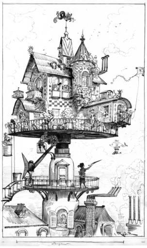 | Keywords: Aerial house3.png en wikipedia 2009 December 12 Maison tournante aérienne drawing shows a dwelling structure elevated above rooftops and designed to revolve and adjust in various directions An occupant points to an airship with a fish-shaped bag in the sky lower right One of the artist's conceptions for his book on life in the upcoming twentieth century Source A G Renstrom LC staff 1981-82 ink over graphite underdrawing Library of Congresshttp //hdl loc gov/loc pnp/ppmsca 02296 1883 Robida Albert 1848-1926 artist Restored version of en File Aerial_house jpg Rotated and cropped Dirt stains smudges and water damage removed Selective brightness adjustments Histogram adjusted and color balanced in some places selectively Graphite underdrawing retained where possible Smaller version available for slow connection speeds at en File Aerial house3 courtesy copy jpg PD-old en Category Albert Robida original upload log page en wikipedia Aerial+house3 png '1' Upload date User Bytes Dimensions Comment - nowrap 2009-02-28 03 27 03 nowrap Chillum nowrap 7805320 nowrap 2871×4847 <small><nowiki> Maison tournante aérienne drawing shows a dwelling structure elevated above rooftops and designed to revolve and adjust in various directions An occupant points to an airship with a fish-shaped bag in the sky lower right O</nowiki></small> Drawings of houses Fictional buildings |