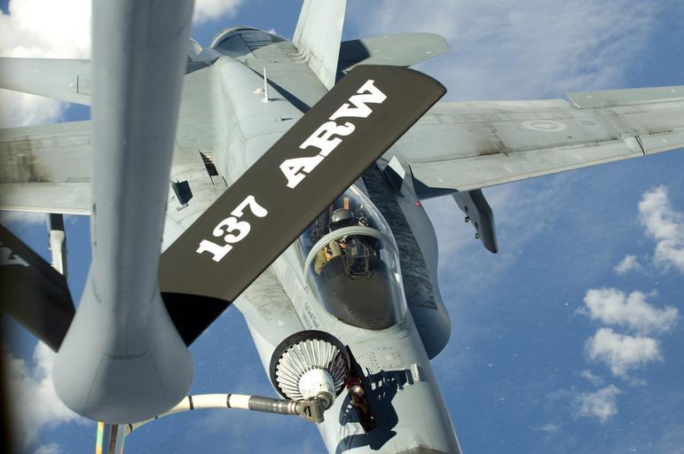 | Keywords: Aerial Refueling during RIMPAC 2008 DVIDS105920.jpg en A Royal Canadian Air Force CF-18 Hornet from 409 Tactical Fighter Squadron conducts an aerial refueling with an Air Force KC-135 Stratotanker as part of Rim of the Pacific 2008 RIMPAC is the world's largest multinational exercise and is scheduled biennially by the U S Pacific Fleet Participants include the United States Australia Chile Canada Japan the Netherlands Peru South Korea Singapore and the United Kingdom 2008-07-23 Petty Officer 1st Class Daniel Woods https //www dvidshub net/image/105920 080723-N-+++++-090 2008-07-29 01 49 USPACOM AT SEA PD-USGov-Military-Navy Aerial refueling by KC-135 Stratotanker as seen from tanker RIMPAC 2008 Images from DoD uploaded by Fæ |