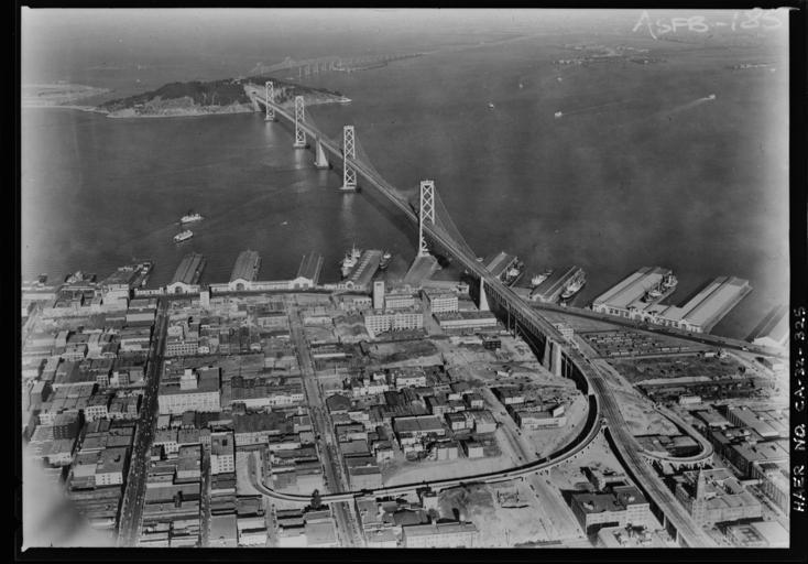 Keywords: Aerial View Of Suspension Bridge To Yerba Buena Island And Beyond From San Francisco.jpg en Title 325 Clyde Sunderland Photographer November 9 1936 AERIAL VIEW OF SUSPENSION BRIDGE TO YERBA BUENA ISLAND AND BEYOND FROM SAN FRANCISCO - San Francisco Oakland Bay Bridge Spanning San Francisco Bay San Francisco San Francisco County CA Reproduction Number HAER CAL 38-SANFRA 141--325 Repository Library of Congress Prints and Photographs Division Washington D C 20540 USA Collections Historic American Buildings Survey/Historic American Engineering Record/Historic American Landscapes Survey Rights and Restrictions Information http //www loc gov/rr/print/res/114_habs html 1936-11-09 http //www loc gov/pictures/item/ca1352 photos 383295p/ Clyde Sunderland 37 775 -122 41833 PD-USGov Uploaded with UploadWizard Rincon Hill San Francisco San Francisco Bay Bridge Yerba Buena Island 1936 in San Francisco |
