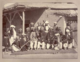 Keywords: Afghan policemen in Kabul 1879-80.jpg Kaubul Police Photograph of Afghan policemen sporting long-barelled rifles taken in Kabul Afghanistan by John Burke 1879-80 Burke accompanied the British army into Afghanistan in 1878 and worked steadily in the hostile environment of Afghanistan and the North West Frontier Province recording military and topographical scenes as well as the peoples of the country during the Second Afghan War 1878-80 Burke also photographed many darbars or meetings that took place between British combat leaders and Afghan chiefs which led to the uneasy peace treaties characteristic of the campaign His two-year Afghan expedition produced a visual document which resulted in his achieving significance as the photographer of the region of the Great Game concerning Anglo-Russian territorial rivalry In the winter of 1879 through to the summer of 1880 the British force called the Kabul Field Force occupied Kabul Its commander General Roberts was tasked with securing Kabul and maintaining lines of communication via the Khyber Pass with the rest of the British forces meanwhile negotiations to bring an end to the war and place a new Amir on the throne of Kabul were going on Burke spent many months in Kabul and took a series of images of its diverse residents http //www bl uk/ The British Library - http //www bl uk/onlinegallery/onlineex/apac/photocoll/k/019pho0000430s3u00073000 html Online Gallery 1879 John Burke 1843 - 1900 PD-old-100 Afghan National Police in Kabul Province History of Afghanistan Men of Afghanistan in the 19th century John Burke |