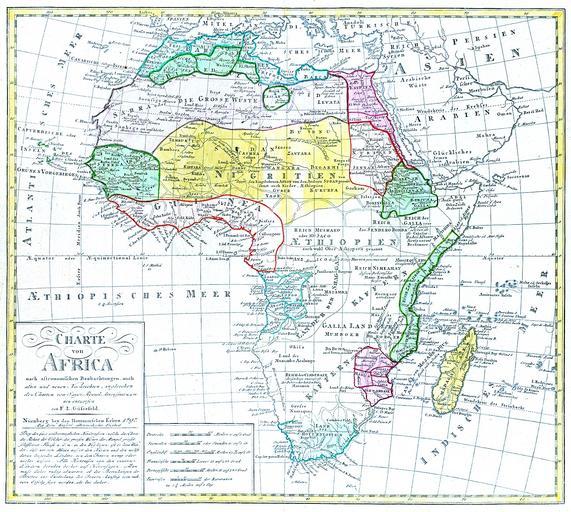 | Keywords: Africa 1797, Franz Ludwig Güssefeld (4017888-recto) cropped.jpg  German period diction Charte von Africa nach astronomischen Beobachtungen auch alten und neuen Nachrichten ingleichen den Charten von Sayer Rennel Arrowsmit u a m neu entworfen von L Grüsefeld ---- Nürnberg bey den Homannischen Erben 1797 Mit Röm Kaiserl allergnädigster Freyheit ---- Bey den fast unübersteiglichen Hindernisen welche das Clima die Roheit der Völcker die grosſen Wüsten der Mangel grosſer schiffbarer Flüsſe u d m in den Weg legen ist es kein Wun- der dass wir von Africa ausser den Küsten und den nechst daran liegenden Ländern von dem Inneren wenig oder nichts wissen Alle Kentnisse von den inneren Ländern beruhen bisher auf auf Hörensagen Man Muss daher ruhig abwarten ob die Bemühungen der Britten zur Entdeckung des Inneren künftig vom meh- rern Erfolg seyn werden als bis daher Africa_1797 _Franz_Ludwig_Güssefeld_ 4017888-recto png 50 2012-05-06 07 52 UTC Africa_1797 _Franz_Ludwig_Güssefeld_ 4017888-recto png Güssefeld Franz Ludwig 1744-1808 Nurmberg 1797<br/> based on Maps by Rennell James Sayer Robert and Arrowsmith Aaron derivative work Morn resized to 2000px; cropped; white point; exposure; contrast Africa_1797 _Franz_Ludwig_Güssefeld_ 4017888-recto png PD-old Original upload log This image is a derivative work of the following images File Africa_1797 _Franz_Ludwig_Güssefeld_ 4017888-recto png licensed with PD-Art PD-old 2008-04-13T01 33 36Z Xiong Chiamiov 3751x3174 20961468 Bytes <nowiki>taken from http //fedora library northwestern edu/inu-afrmaps/ and converted to png with mogrify PD-old </nowiki> Uploaded with derivativeFX 1790s maps of Africa 1797 maps Franz Ludwig Güssefeld Maps by Homannsche Erben Maps in German Maps showing 18th-century history Africa in the 18th century |