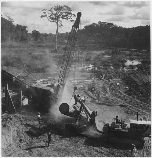 Keywords: Africa. Cameroons. Here the log is being picked up by the Orton crane to be swung to the conveyor belt, part of which... - NARA - 541642.tif Scope and content General notes 541642 Local identifier 286-ME-1 11 U S International Development Cooperation Agency Agency for International Development 10/01/1979 - ca 1998 Most Recent <br /> Department of State International Cooperation Administration 06/30/1955 - 11/1961 Predecessor <br /> Foreign Operations Administration 08/01/1953 - 06/30/1955 Predecessor <br /> Economic Cooperation Administration 1948 - 12/30/1951 Predecessor <br /> Mutual Security Agency 1951 - 08/01/1953 Predecessor NARA-Author Rodger George Photographer 2236828 <br /> Still Picture Records Section Special Media Archives Services Division NWCS-S National Archives at College Park 8601 Adelphi Road College Park MD 20740-6001 circa 1948 1955 Record group Record Group 286 Records of the Agency for International Development 1948 - 2003 Record group ARC 608 Photographs of Marshall Plan Activities in Europe and Africa compiled ca 1948 - ca 1989 documenting the period 1945 - ca 1954 Series ARC 541631 File unit File unit ARC Variant control numbers NAIL Control Number NWDNS-286-ME-1 11 yes Other versions NARA-cooperation PD-USGov George Rodger Timber in Cameroon |