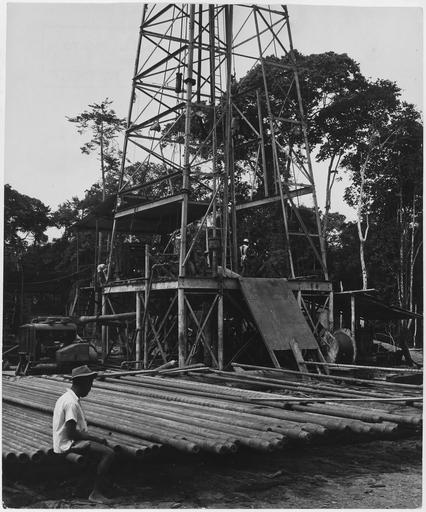 Keywords: Africa. Gabon, French Equatorial Africa. The rig is up, a native laborer sits sleepily on the scores of drill pipe... - NARA - 541652.tif Scope and content General notes 541652 Local identifier 286-ME-1 21 U S International Development Cooperation Agency Agency for International Development 10/01/1979 - ca 1998 Most Recent <br /> Department of State International Cooperation Administration 06/30/1955 - 11/1961 Predecessor <br /> Foreign Operations Administration 08/01/1953 - 06/30/1955 Predecessor <br /> Economic Cooperation Administration 1948 - 12/30/1951 Predecessor <br /> Mutual Security Agency 1951 - 08/01/1953 Predecessor NARA-Author Rodger George Photographer 2236828 <br /> Still Picture Records Section Special Media Archives Services Division NWCS-S National Archives at College Park 8601 Adelphi Road College Park MD 20740-6001 circa 1948 1955 Record group Record Group 286 Records of the Agency for International Development 1948 - 2003 Record group ARC 608 Photographs of Marshall Plan Activities in Europe and Africa compiled ca 1948 - ca 1989 documenting the period 1945 - ca 1954 Series ARC 541631 File unit File unit ARC Variant control numbers NAIL Control Number NWDNS-286-ME-1 21 yes Other versions NARA-cooperation PD-USGov French Equatorial Africa Oil drilling rigs 1950s Marshall Plan George Rodger Economy of Gabon Gabon in the 1950s |