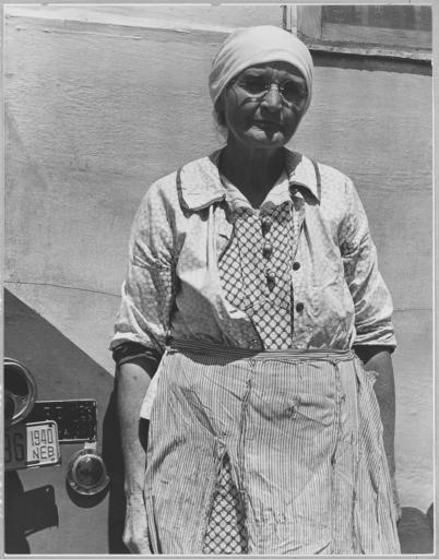 | Keywords: Age 70, she came from near Greeley, Nebraska, with sister age 65, nephew age 30, and brother age 68. - NARA - 521788.jpg Scope and content Full caption reads as follows Age 70 she came from near Greeley Nebraska with sister age 65 nephew age 30 and brother age 68 General notes 521788 Local identifier 83-G-41544 Department of Agriculture Bureau of Agricultural Economics Division of Economic Information ca 1922 - ca 1953 NARA-Author Lange Dorothea 1895-1965 Photographer 1372774 <br /> Still Picture Records Section Special Media Archives Services Division NWCS-S National Archives at College Park 8601 Adelphi Road College Park MD 20740-6001 1940-04-11 Record group Record Group 83 Records of the Bureau of Agricultural Economics 1876 - 1959 Record group ARC 412 Photographic Prints Documenting Programs and Activities of the Bureau of Agricultural Economics and Predecessor Agencies compiled ca 1922 - ca 1947 documenting the period ca 1911 - ca 1947 Series ARC 521048 File unit File unit ARC Variant control numbers NAIL Control Number NWDNS-83-G-41544 Other versions <gallery> File Age_70 _she_came_from_near_Greeley _Nebraska _with_sister_age_65 _nephew_age_30 _and_brother_age_68 _-_NARA_-_521788 tif tif File Age_70 _she_came_from_near_Greeley _Nebraska _with_sister_age_65 _nephew_age_30 _and_brother_age_68 _-_NARA_-_521788 jpg jpg </gallery> NARA-cooperation PD-USGov Dorothea Lange Old women of the United States Black and white portrait photographs of women of the United States 1940 photographs Females with glasses Nebraska Standing women |