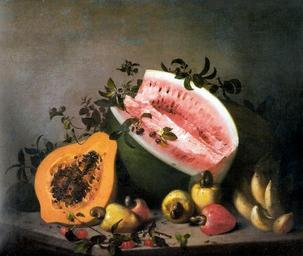 Keywords: Agostinho da Mota - Mamão e melancia, 1860.jpg Artwork creator Agostinho José da Mota 1860 technique oil canvas cm 53 4 65 Institution Museu Nacional de Belas Artes accession number 758 object history credit line Scan MNBA/Banco Santos catalogue São Paulo 2002 PD-old-auto 1878 Agostinho José da Mota Brazilian paintings in the Museu Nacional de Belas Artes 1860 paintings Still life paintings of melons Carica papaya Still life paintings of fruits 1860s paintings from Brazil 1860 19th-century oil on canvas paintings Oil still life paintings Still life paintings from Brazil 1860s still-life paintings 19th-century paintings in the Museu Nacional de Belas Artes Still life paintings in the Museu Nacional de Belas Artes |