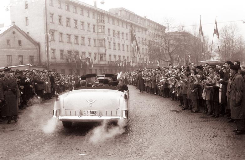 Keywords: Ahmed Sékou Touré na obisku v Ljubljani 1961 (2).jpg Ahmed Sékou Touré na obisku v Ljubljani 272109 1961-01-08 creator Danilo Škofič PD-Slovenia 1961 in Slovenia 20th-century black and white photographs of Ljubljana State visits in Ljubljana Ahmed Sékou Touré Historical images of Liberation Front Square Ljubljana Historical images of automobiles in the Center District Ljubljana Photographs by Danilo Škofič Cobblestone streets in Ljubljana License plates of Yugoslavia Cadillac Series 62 Convertible 1954 Bilateral relations of Guinea Bilateral relations of Yugoslavia