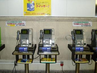 Keywords: Aikoishida-Sta-inside-public-telephone.jpg Aikoishida Sta Public telephone 愛甲石田駅の公衆電話 市外 番の異なる公衆電話が並んでいる Photo by Cassiopeia_sweet 2008-01-04 Cassiopeia_sweet Telephone booths in Japan Aikō-Ishida Station