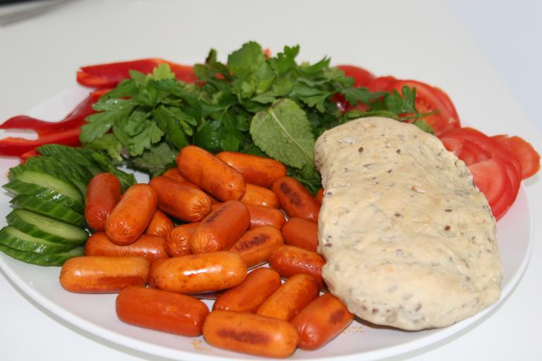 Keywords: Ailin18VegetarianSausages.jpg en Ovo-vegetarian sausages own AilinParsa Cc-zero Vegan sweet food