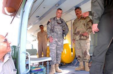 Keywords: Air Cavalry checks out Iraqi aircraft DVIDS38553.jpg en Traverse City Mich native Col Dan Shanahan commander of the 1st Air Cavalry Brigade 1st Cavalry Division listens with Brig Gen Sata the commander of the Iraqi air force as a pilot talks about the MI-17 helicopter they are standing inside during a static display at Camp Taji Iraq March 17 2007-03-17 Staff Sgt Nathan Hoskins https //www dvidshub net/image/38553 38553 2007-03-19 12 53 TAJI IQ PD-USGov 1st Cavalry Division United States Camp Taji Images from DoD uploaded by Fæ |