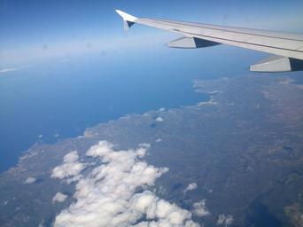 Keywords: aircraft aerial view fly sky clouds blue travel aviation outlook holiday flight above the clouds