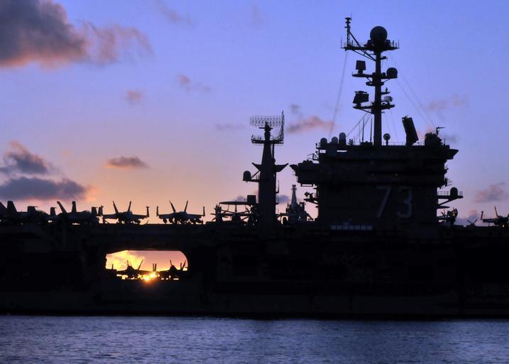 Keywords: aircraft carrier military silhouette navy defense aircraft planes maritime security sea based air jet helicopter sunset